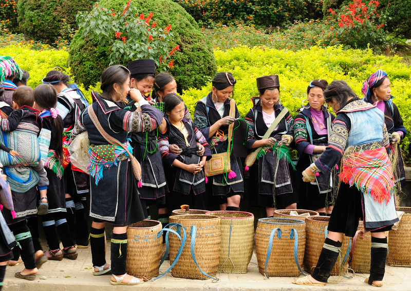 Sapa, Vietnam – October 23: Woman in the traditional dress of Black Homong people settling on the mountain regions of the Sapa town on October 22, 2010