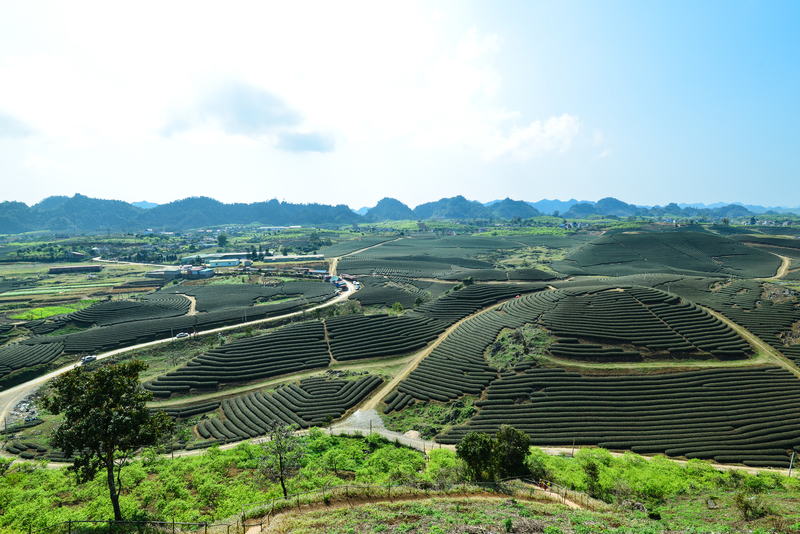 Đồi Chè Mộc Châu: những đường chè chạy vòng quanh đồi được sắp đặt thành hàng như những thửa ruộng bậc thang xanh ngắt cứ trải dài bất tận.